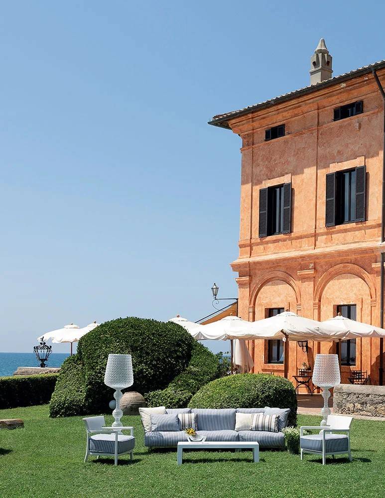 Qui dit French Riviera dit aussi longue soirée d’été et convivialité. Pour cette raison, des éclairages chaleureux sont indispensables. Vous pouvez opter pour des luminaires sur batterie, qui vous permettront de profiter d’une belle qualité d’éclairage près de votre table tout au long de la soirée. Chez Kartell, le lampadaire Kabuki avec son motif semblable à de la dentelle est un vrai symbole de raffinement, digne d’une ambiance décorative à la French Riviera.