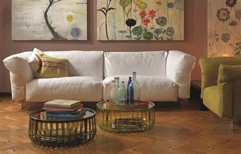 Tandis que le Panier de Kartell, dessiné par Ronan et Erwan Bouroullec, combine les fonctions de corbeille, de table basse ou de porte-revues.