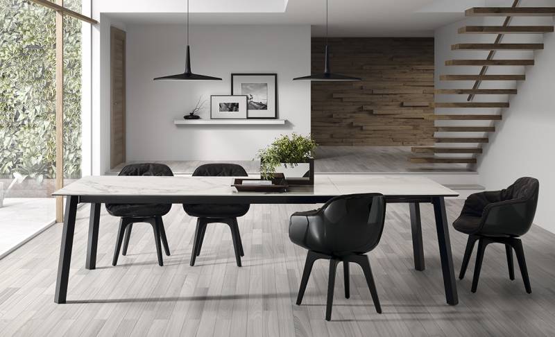 Le mobilier en céramique peut également s’intégrer au style industriel d’un loft renforcé par la présence de matériaux bruts tels que le bois ou le métal.