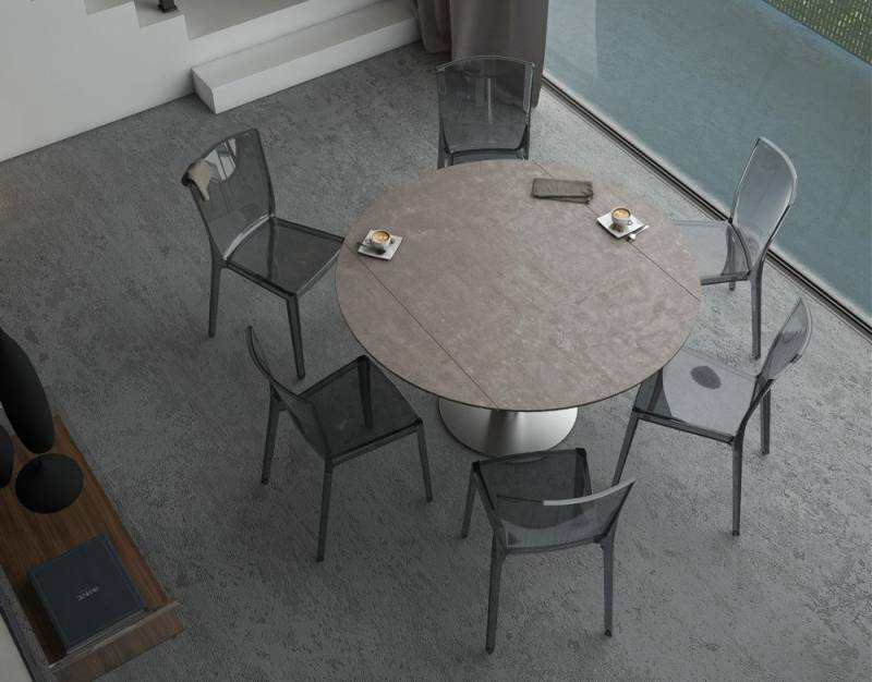 Les tables en céramique personnalisables sont des éléments de décoration qui se marieront à merveille avec du mobilier moderne comme des chaises transparentes ou des chaises en cuir blanc pur.